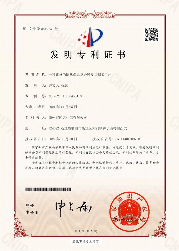 衢州市聞天化工有限公司成立于2003年,是國內(nèi)研發(fā)、生產(chǎn)氟碳涂料的企業(yè)。衢州傳褀防水防腐工程科技有限公司作為其下屬公司,專業(yè)承接各類防水防腐項目。企業(yè)經(jīng)過20年的市場磨練,已在鋼構(gòu)防腐領(lǐng)域、建筑屋面和屋面修繕、防水隔熱領(lǐng)域、建筑外立面的防水隔熱裝飾領(lǐng)域及戶外竹木防腐領(lǐng)域形成了自己獨特的產(chǎn)品體系和個性化解決方案。公司經(jīng)過多年的努力,已獲得了多項國家發(fā)明專利和新產(chǎn)品科技成果,并參與了中國建筑材料流通協(xié)會組織的《房屋修繕防水工程規(guī)范》的編制,中建協(xié)涂裝委員會浙西工作站設(shè)立在我公司。公司的產(chǎn)品有一個共同的特點,就是經(jīng)久耐用,使用年限超長。鋼構(gòu)防腐的效果是其他材料的三到五倍使用壽命;屋面防水隔熱的效果是其他材料的三到五倍的使用壽命;建筑外立面的效果是既防水又隔熱保溫,既美觀又不褪色;戶外竹木防腐的效果更是其他材料五倍以上的壽命。